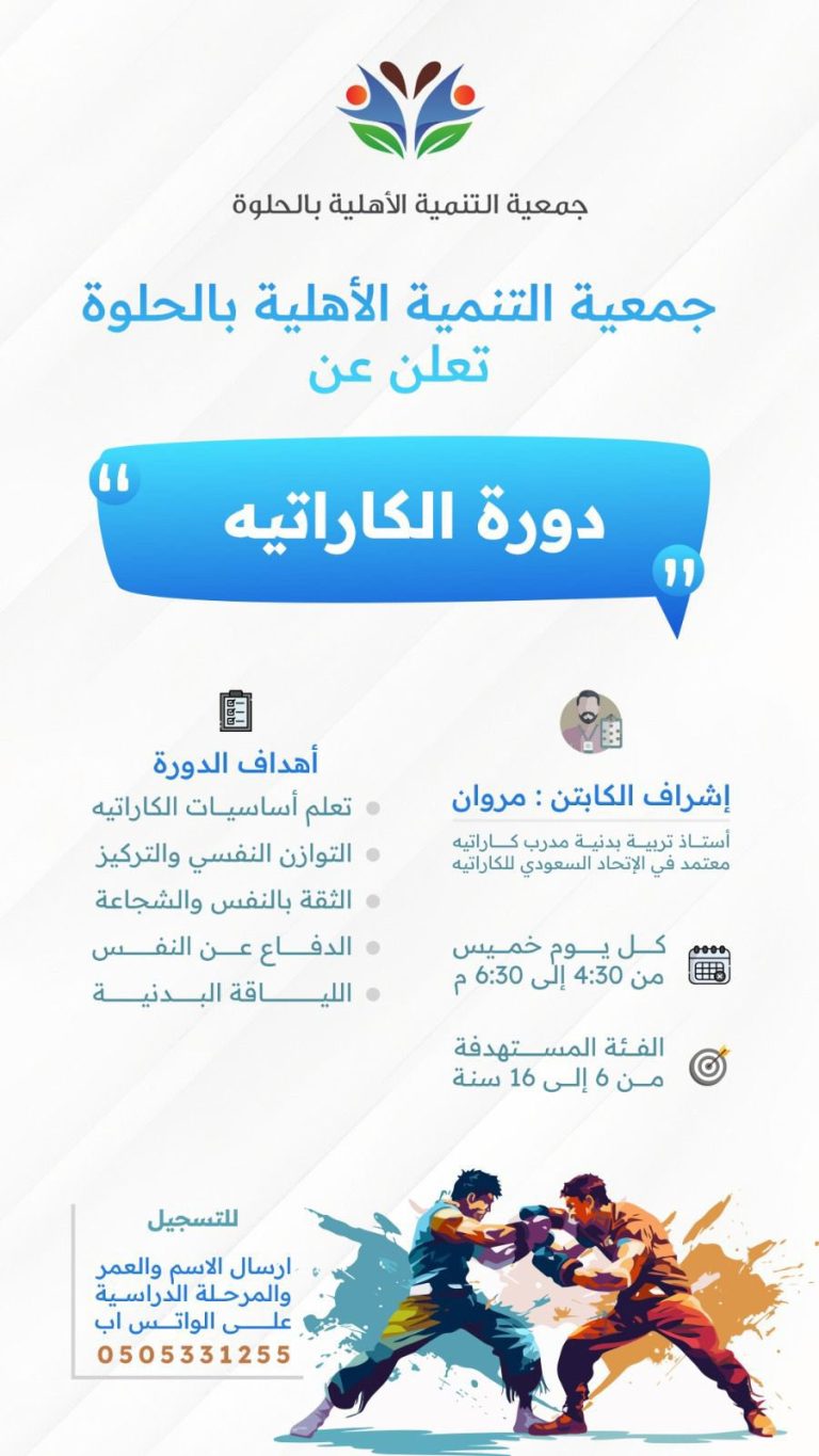 تعلن جمعية التنمية الأهلية بالحلوة عن إقامة دورة الكارتيه التفاصيل #جمعية_التنمية_الأهلية_بالحلوة #حوطة_بني_تميم