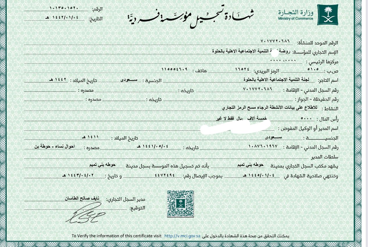 تتقدم #جمعية_التنمية_الأهلية_بالحلوة بوافر الشكر والتقدير لرجل الأعمال : خالد بن عبدالرحمن الماجد التميمي على دعمه السخي لبرامج الجمعية بمبلغ وقدره